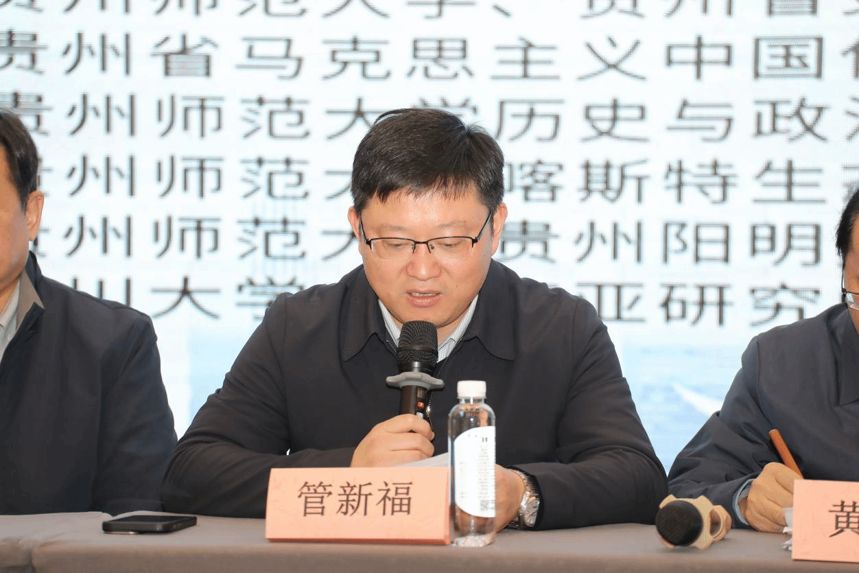 贵州师范大学副校长管新福教授在致辞中指出,贵州省沉淀了厚重璀璨的历史文化——红色文化见证革命初心,阳明文化蕴含思想智慧,民族文化彰显多元共生,屯堡文化承载历史记忆,指出贵州省委部署的“四大文化工程”,既是挖掘贵州历史底蕴的重要抓手,更是构建贵州特色史学、服务地方发展的战略举措。